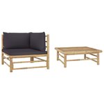 Salon de jardin 2 pcs avec coussins gris fonce Bambou