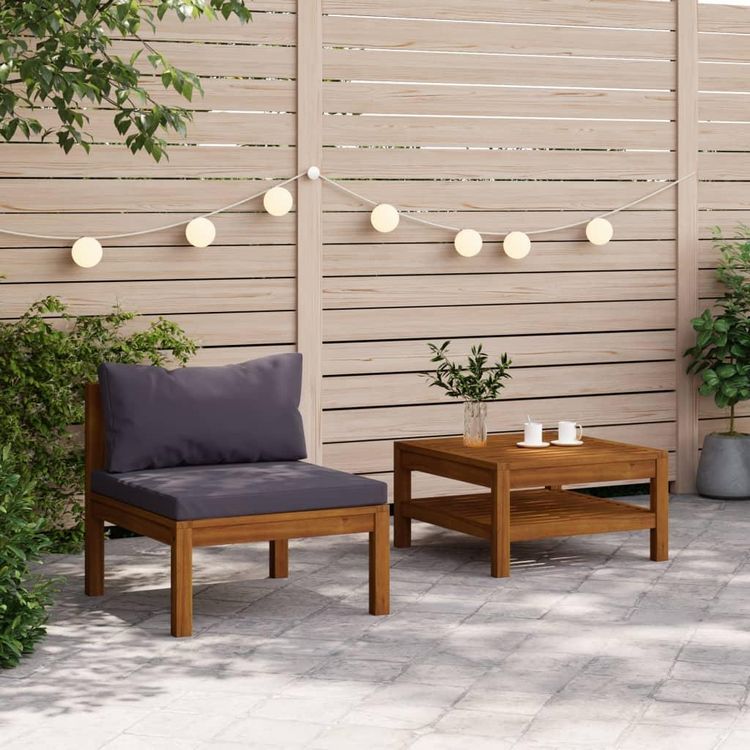 Salon de jardin 2 pcs avec coussins gris fonce Bois d'acacia