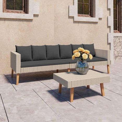 Salon de jardin 2 pcs avec coussins Resine tressee Beige