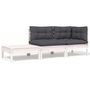 Salon de jardin 3 pcs avec coussins Blanc Bois de pin massif