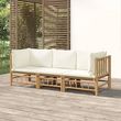 Salon de jardin 3 pcs avec coussins blanc creme bambou