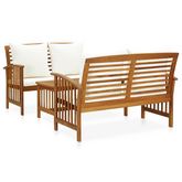 L'ensemble de meubles d'exterieur est construit en bois d'acacia massif avec une finition a l'huile, ce qui le rend stable et durable. Les coussins epais d'assise et de dossier rendent l'ensemble doux pour vous y asseoir. Grace au dessus de table en bois massif au design a lattes, la table basse vous offre de l'espace pour mettre vos collations, paniers de fruits, objets decoratifs, ainsi que d'autres essentiels. Le dossier legerement incurve et les accoudoirs ajoutent au confort d'assise du banc.