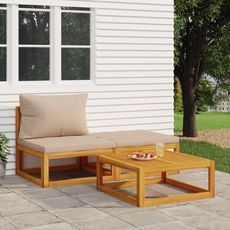 Salon de jardin 3 pcs avec coussins bois massif d'acacia