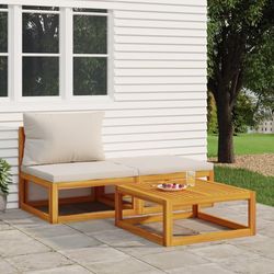 Salon de jardin 3 pcs avec coussins bois massif d'acacia