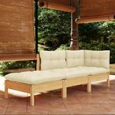 Salon de jardin 3 pcs avec coussins creme Bois de pin massif