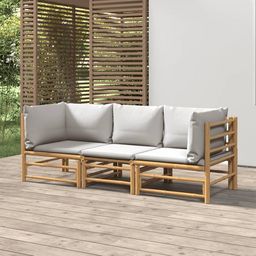 Salon de jardin 3 pcs avec coussins gris clair bambou