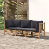 Salon de jardin 3 pcs avec coussins gris fonce bambou