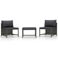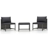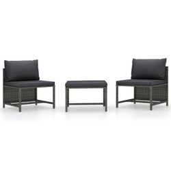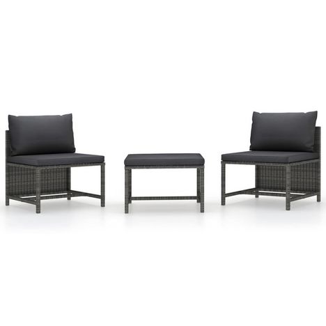Salon de jardin 3 pcs avec coussins Gris Resine tressee