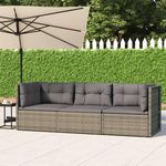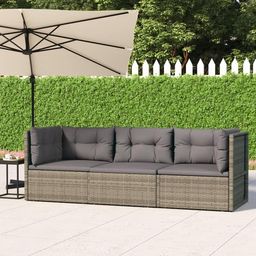 Salon de jardin 3 pcs avec coussins Gris Resine tressee