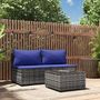Salon de jardin 3 pcs avec coussins Gris Resine tressee