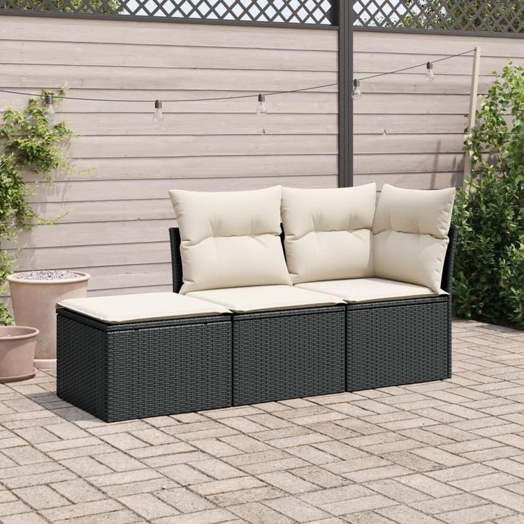 Salon de jardin 3 pcs avec coussins noir resine tressee
