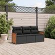 Salon de jardin 3 pcs avec coussins noir resine tressee