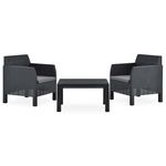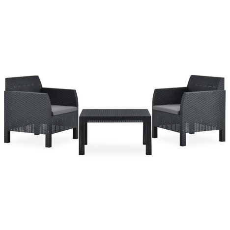 Salon de jardin 3 pcs avec coussins PP Rotin Anthracite