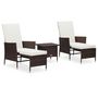 Salon de jardin 3 pcs avec coussins Resine tressee Marron