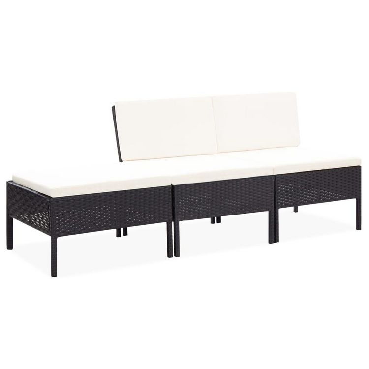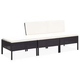 Salon de jardin 3 pcs avec coussins Resine tressee Noir
