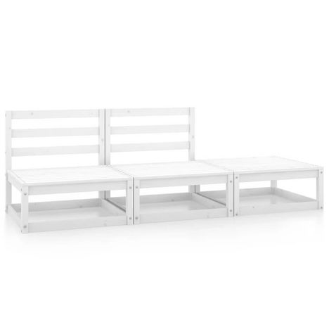 Salon de jardin 3 pcs Blanc Bois de pin massif