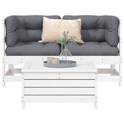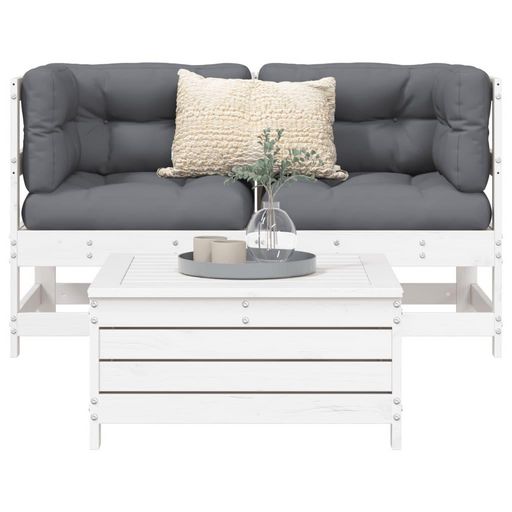Salon de jardin 3 pcs blanc bois de pin massif
