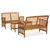 L'ensemble de meubles d'exterieur est construit en bois d'acacia massif avec une finition a l'huile, ce qui le rend stable et durable. Grace au dessus de table en bois massif au design a lattes, la table basse vous offre de l'espace pour mettre vos collations, paniers de fruits, objets decoratifs, ainsi que d'autres essentiels. Le dossier legerement incurve et les accoudoirs ajoutent au confort d'assise du banc.