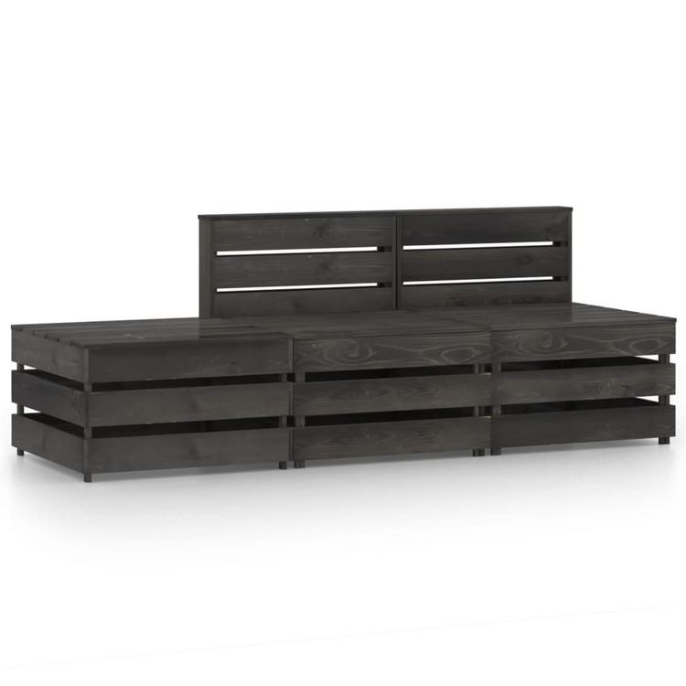 Salon de jardin 3 pcs Bois de pin impregne de gris