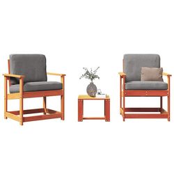Salon de jardin 3 pcs cire marron bois de pin massif