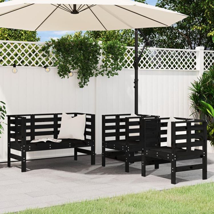 Salon de jardin 3 pcs noir bois massif de pin