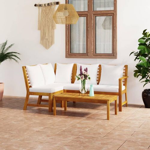 Salon de jardin 4 pcs avec coussin Creme Bois d'acacia solide