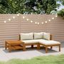 Salon de jardin 4 pcs avec coussin creme Bois d'acacia solide