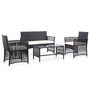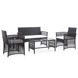 Salon de jardin 4 pcs avec coussin Resine tressee Noir