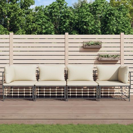 Salon de jardin 4 pcs avec coussins anthracite resine tressee