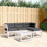 Salon de jardin 4 pcs avec coussins blanc bois de pin massif