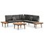 Notre mobilier de jardin facile a nettoyer et resistant a l'usure est fait de bois d'acacia massif, un bois dur tropical, resistant aux intemperies et durable pour des annees a utiliser. La structure robuste en acier rend l'ensemble tres stable et durable. Vous pouvez aussi mettre des collations, des boissons, des tasses a the, des livres ou d'autres petits objets sur les petites parties en bois. Cet ensemble est livre avec des coussins et oreillers tres confortables et rembourres. Les housses en polyester necessitant peu d'entretien peuvent egalement etre enlevees et lavees.