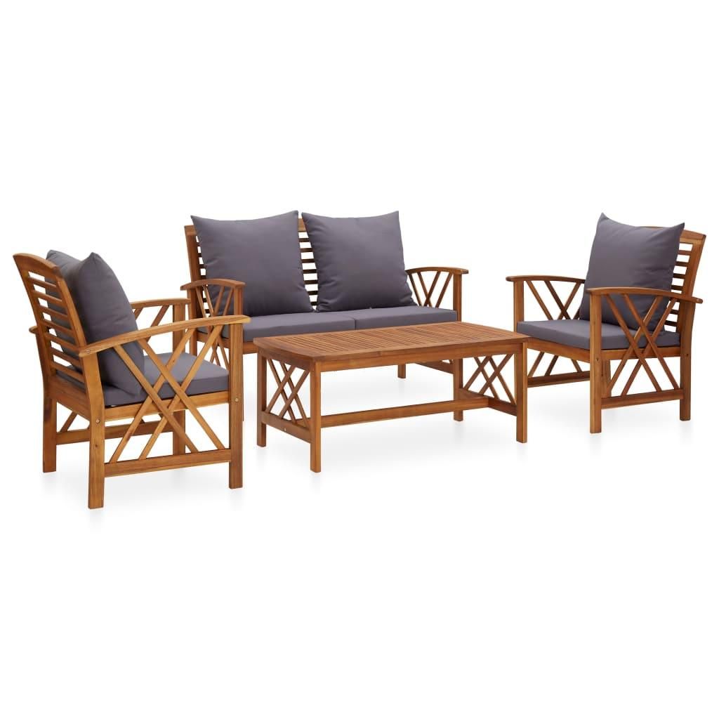 Salon de jardin 4 pcs avec coussins Bois d'acacia solide