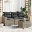 Salon de jardin 4 pcs avec coussins gris clair resine tressee