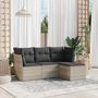 Salon de jardin 4 pcs avec coussins gris clair resine tressee