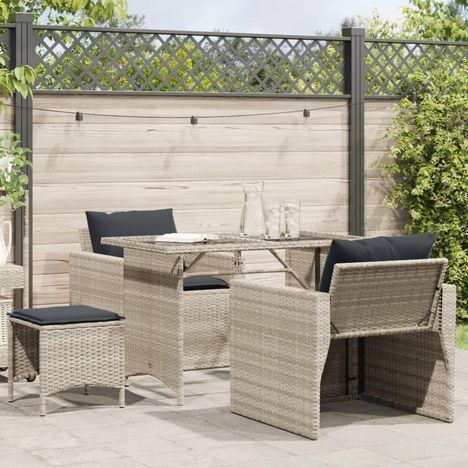 Salon de jardin 4 pcs avec coussins gris clair resine tressee