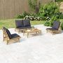 Salon de jardin 4 pcs avec coussins gris fonce bambou