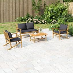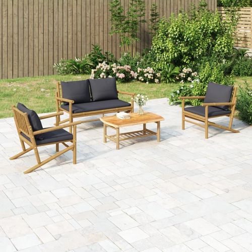 Salon de jardin 4 pcs avec coussins gris fonce bambou