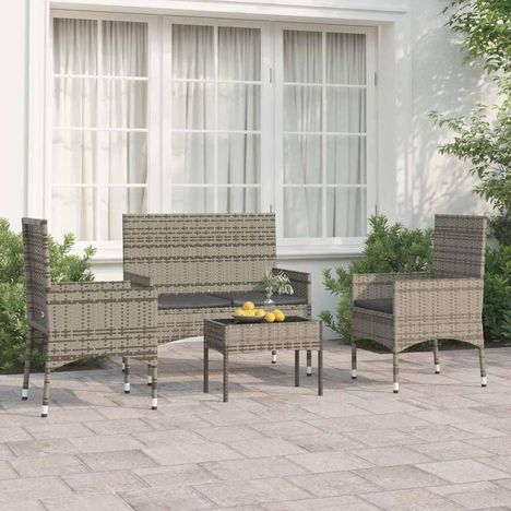 Salon de jardin 4 pcs avec coussins Gris Resine tressee