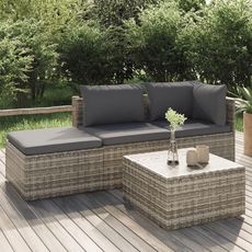 Salon de jardin 4 pcs avec coussins Gris Resine tressee