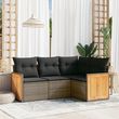 Salon de jardin 4 pcs avec coussins gris resine tressee