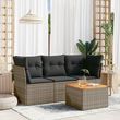 Salon de jardin 4 pcs avec coussins gris resine tressee