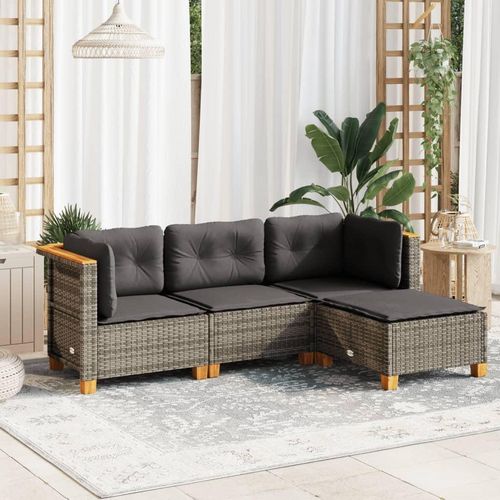 Salon de jardin 4 pcs avec coussins gris resine tressee