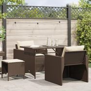 Salon de jardin 4 pcs avec coussins marron resine tressee