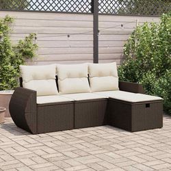 Salon de jardin 4 pcs avec coussins marron resine tressee