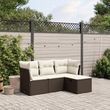 Salon de jardin 4 pcs avec coussins marron resine tressee