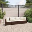 Salon de jardin 4 pcs avec coussins marron resine tressee