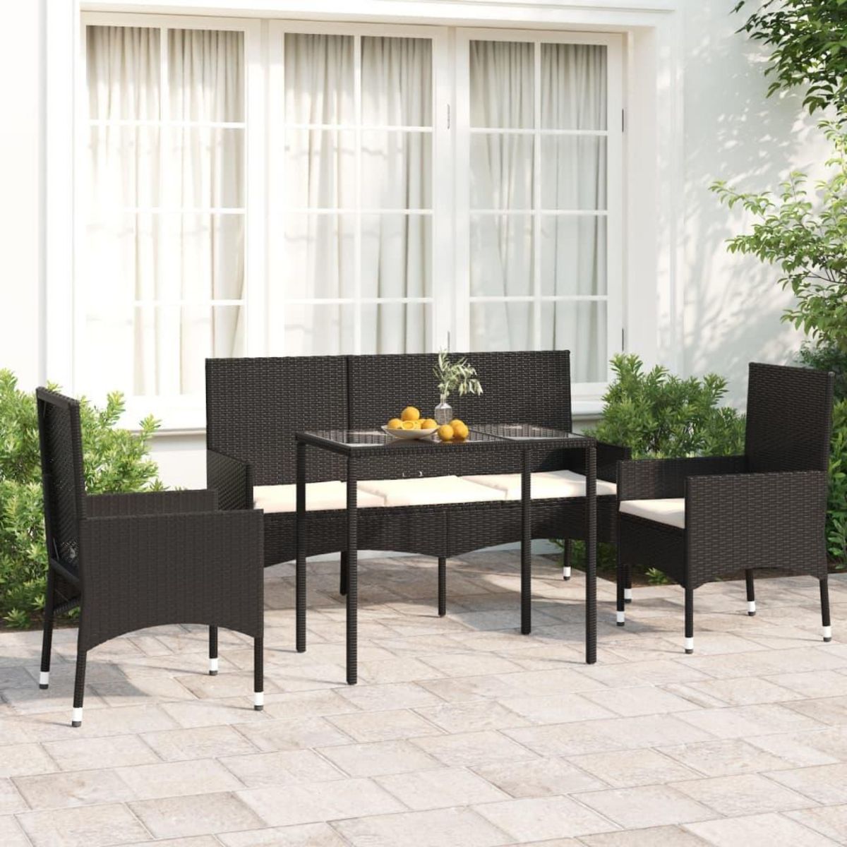 Salon de jardin 4 pcs avec coussins Noir Resine tressee