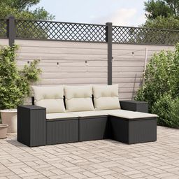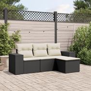 Salon de jardin 4 pcs avec coussins noir resine tressee