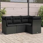 Salon de jardin 4 pcs avec coussins noir resine tressee