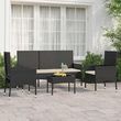 Salon de jardin 4 pcs avec coussins Noir Resine tressee